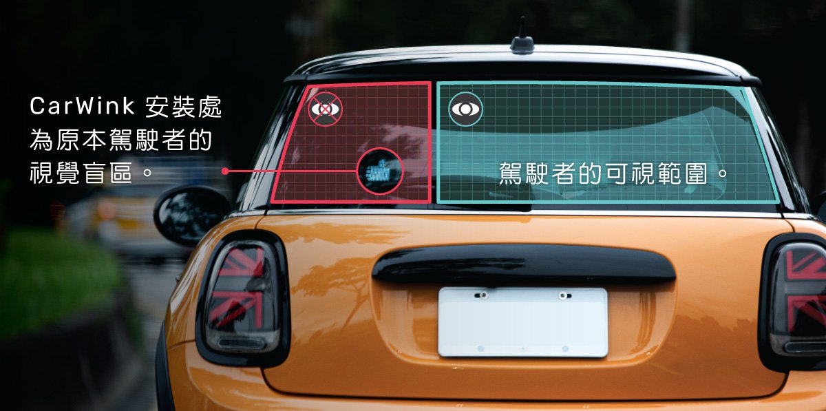 CarWink的大小符合用路安全,不會遮蔽後照鏡視線,也符合台灣法規 !