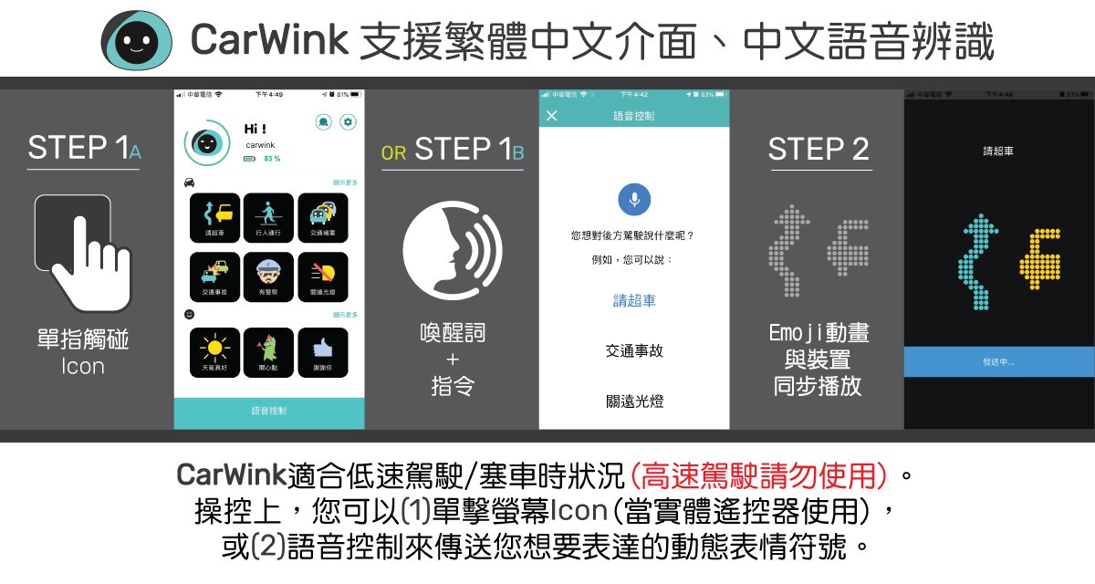 就讓 CarWink 駕駛小夥球幫你表達吧,提供你除了按喇叭爆氣以外更友善有趣的溝通方式!