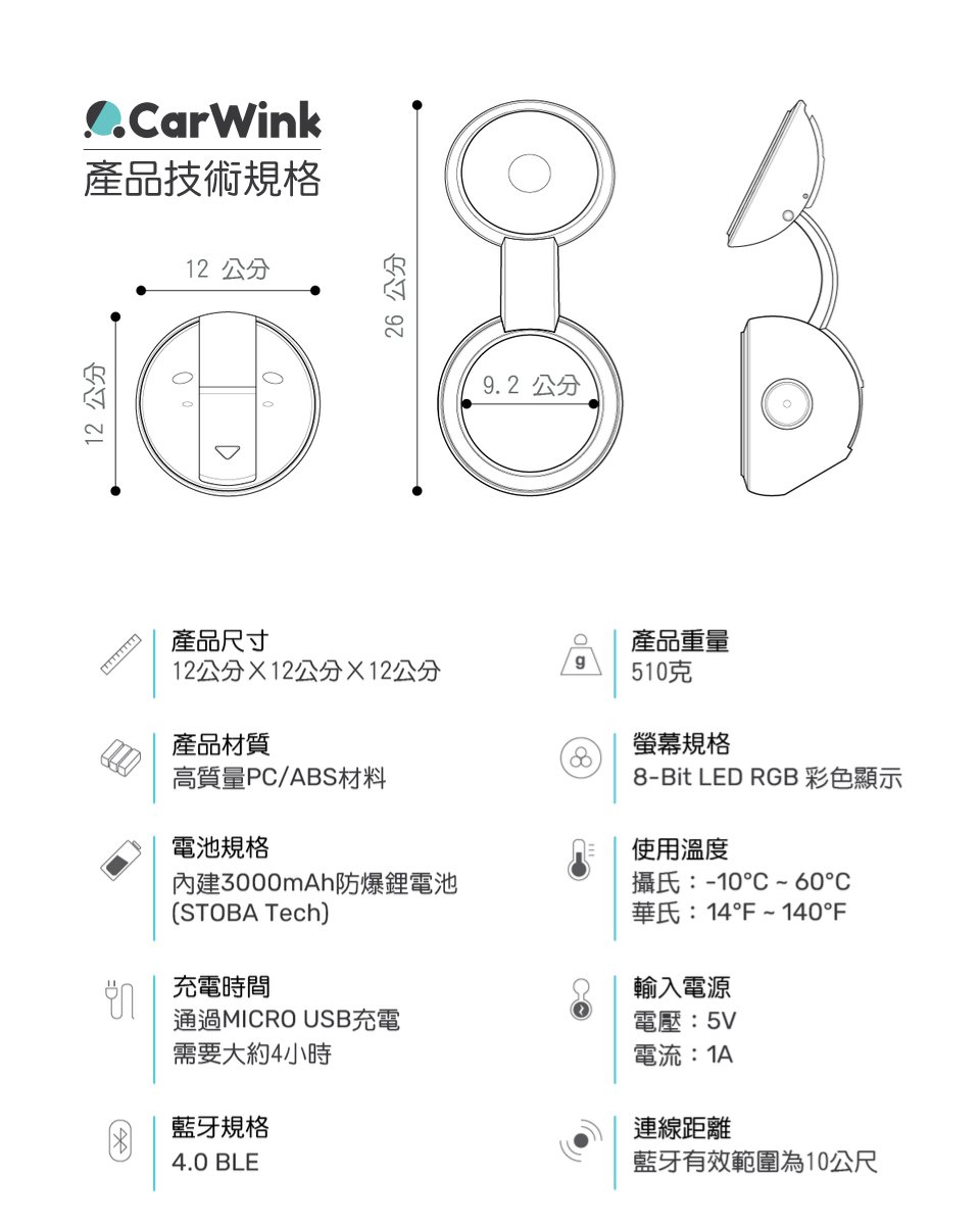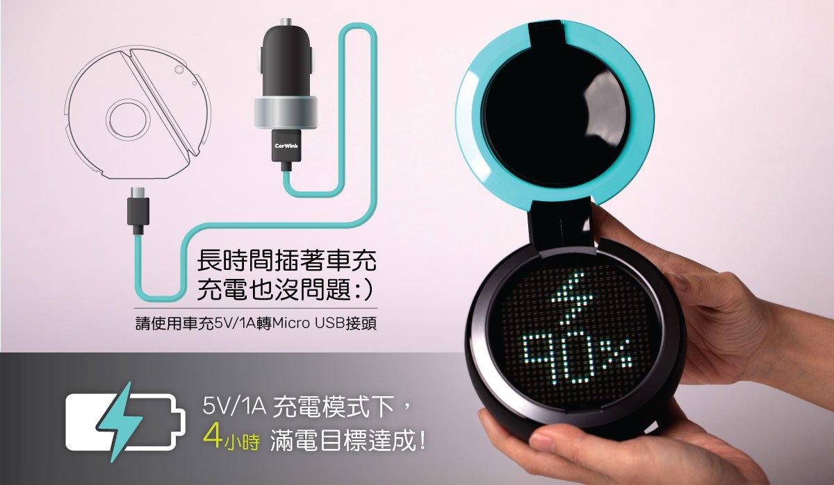 CarWink 只需要用Micro USB充電(5V/1A)就好了,充滿電約需要4小時。若以每天使用10次表情符號動畫來估算的話,