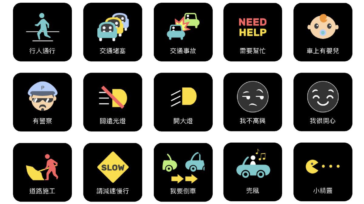 小夥球盡可能地使用動態表情符號來取代大量文字跑馬讓後方駕駛更容易識別而不會分心,
